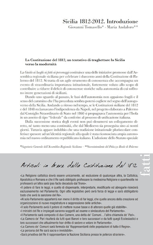 Documento: La Costituzione del 1812, un tentativo di traghettare la Sicilia verso la modernità